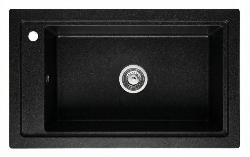 Graniteland Magra Granieten zwart arduin hardsteen Spoelbak opbouw 686x427 mm met kraangatbank en RVS Plug 1208970615