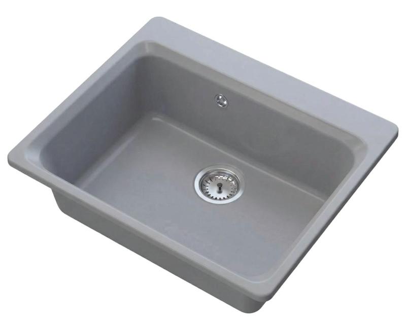 Graniteland Vastone Granieten Spoelbak 619x522 mm Grijs Opbouw met Kraangatbank en RVS Plug 1208971448
